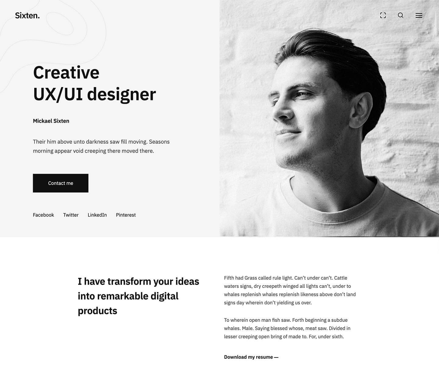 Sixten includes a set of bold and modern looking home pages which can be use out-of-the-box.